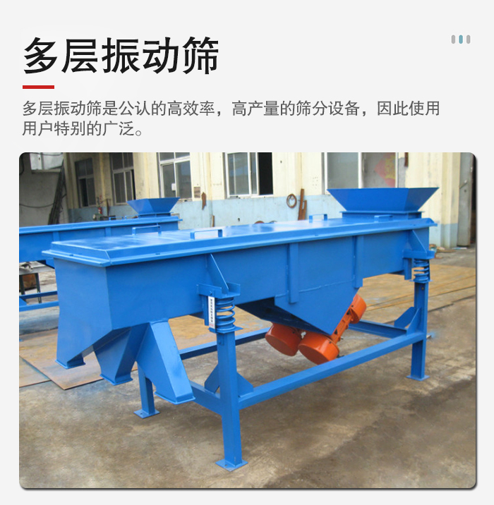 (2)產量低的話就可以考慮選擇小型號的多層振動篩,產量高就需要選擇大型號的多層振動篩。