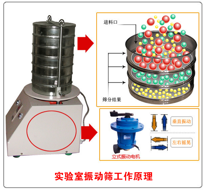 實驗室振動篩采用新型專用動力發生器,產生多元高頻振動,高效篩濾樣品;標準篩體,確保樣品分 析高精度;電子延時器,可根據需要設定同種物料同等篩分時間、保證樣品的分析數據統一性,把檢驗誤差降到低程度,以便對產品質量做出準確判斷。